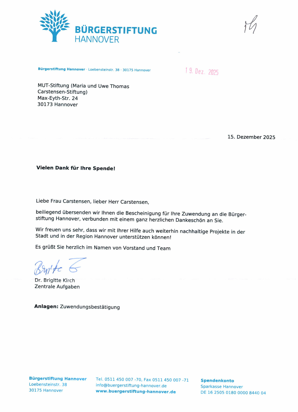 „Wir freuen uns sehr, dass wir mit Ihrer Hilfe auch weiterhin nachhaltige Projekte in der Stadt und in der Region Hannover unterstützen können!“
